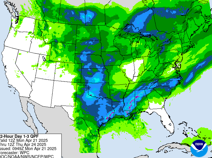 خلال نهاية الأسبوع ، ستكون الولايات الجنوبية نفسها معرضة لخطر العواصف الرعدية الشديدة والبرد الكبير والأعاصير مثل مجموعة من براميل الاستحمام في جميع أنحاء المنطقة. في 25 أبريل ، يمكن أن يمتد الأمطار الغزيرة إلى وديان ميسيسيبي وأوهايو ، على حد قول أكوويذر.