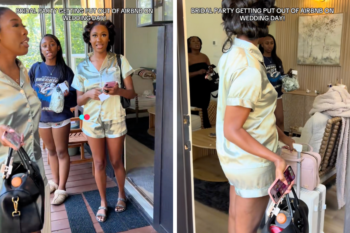 يُظهر مقطع فيديو Tiktok العروس ، تاييراني ، وحفلتها التي يتم إخلائها من عقار مستأجر أثناء إنجاز شعرهم ومكياجهم لأن المضيف ادعى أنهم تجاوزوا حد الإشغال.