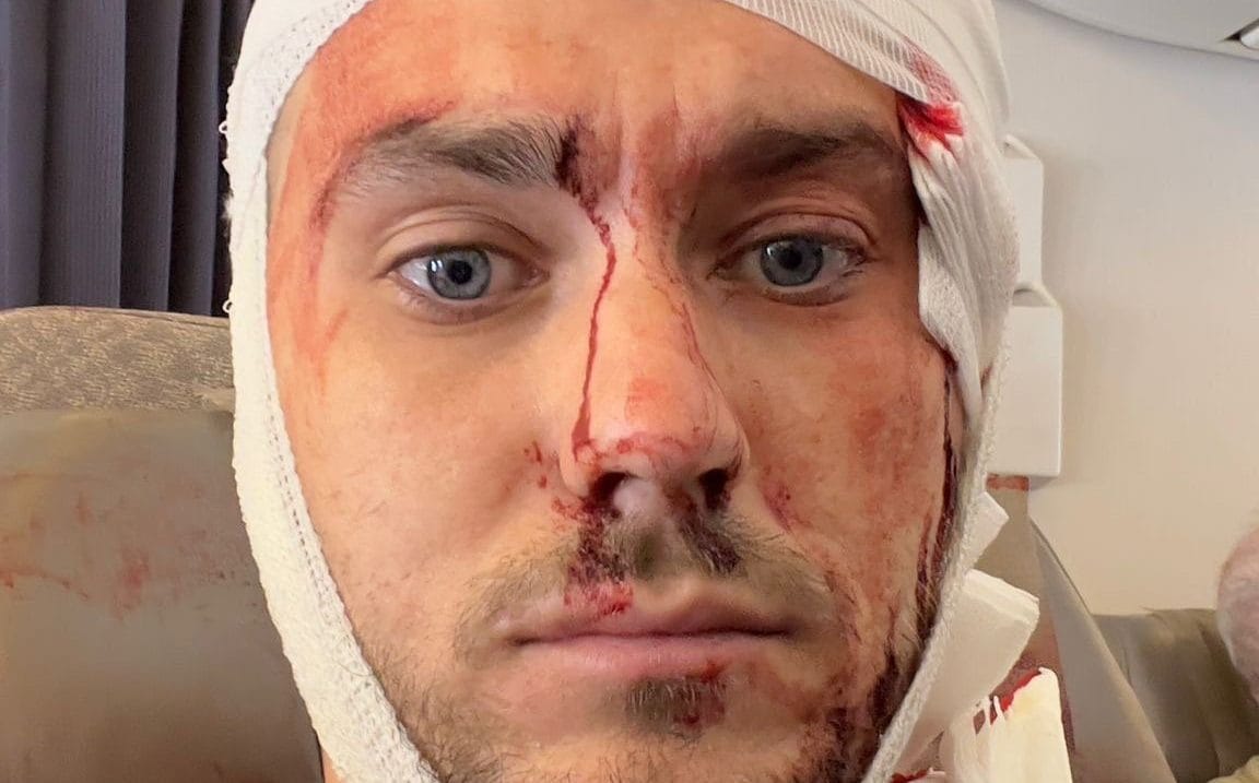لقد عانى من كسور متعددة في العمود الفقري والرقبة، وورم دموي في العمود الفقري فوق الجافية، وجرح في رأسه تطلب 20 غرزة.