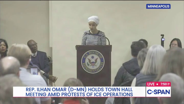 تعرضت النائبة عن ولاية مينيسوتا إلهان عمر لهجوم خلال قاعة بلدية ليلة الثلاثاء في مينيابوليس. وكانت النائبة الديمقراطية تتحدث خلف المنصة عندما اندفع رجل نحوها ورشها بسائل غير معروف وصرخ في وجهها. ولم يتضح على الفور ما قاله. وسرعان ما احتضن الرجل من قبل أحد أفراد الحراسة الأمنية لعمر، وتم اقتياده بعيدًا.