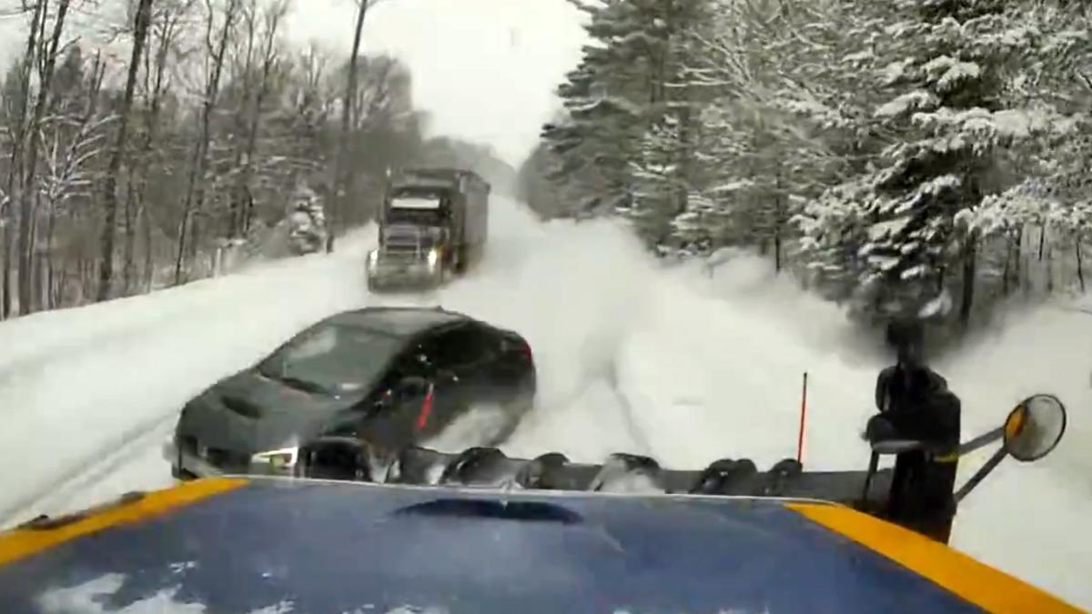 في اللقطات التي التقطت يوم 16 يناير، يمكننا أن نرى سيارة السيدان الرياضية السوداء تحاول التقدم أمام مقطورة جرار على طريق مشجر ضيق لم يتم حرثه بعد. لسوء الحظ لجميع المشاركين هناك يكون محراث في حركة المرور القادمة على الجانب الآخر من المنحنى الأعمى، حيث تصطدم أبواب WRX بجانب السائق عندما يفشل السائق في إكمال تمريره.