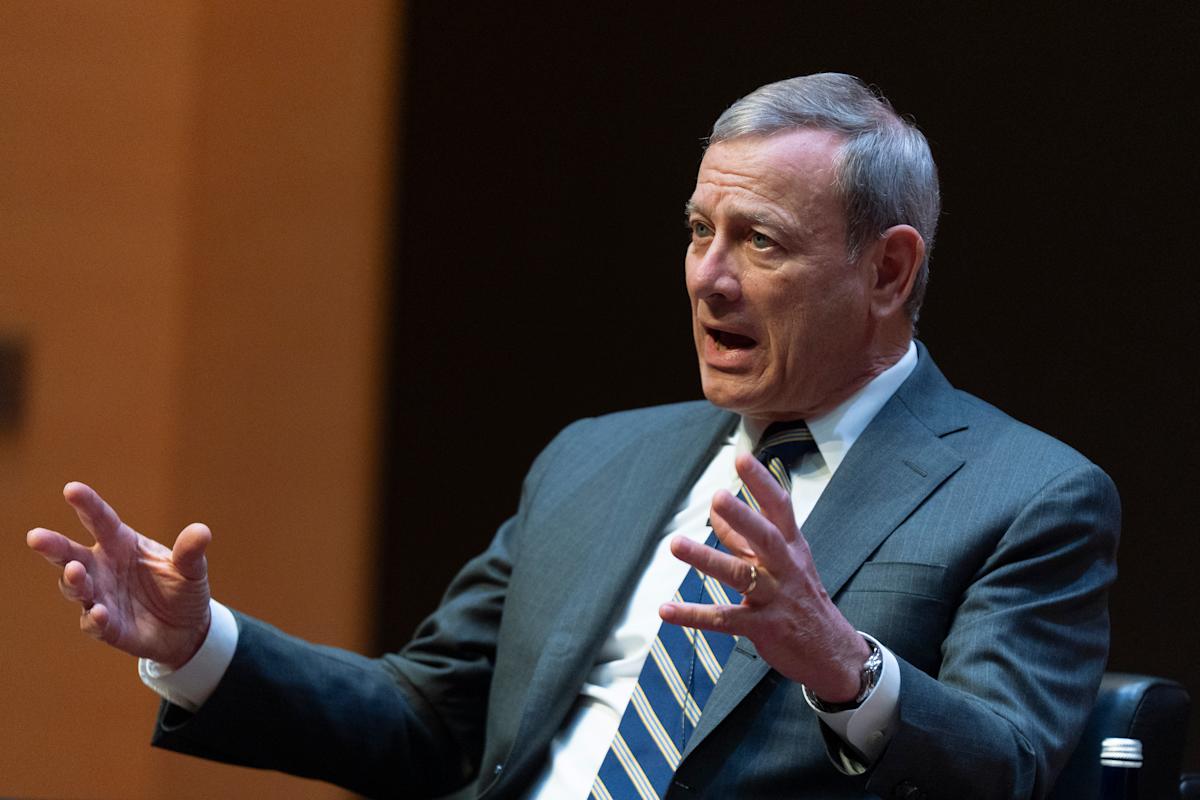 وصف كبير القضاة جون روبرتس حكم القانون بأنه “مهدد بالانقراض” وحذر من “تحصيل القضاة” ، لكنه يتحدث في واشنطن يوم الاثنين أنه لم يشير مباشرة إلى الرئيس دونالد ترامب أو حلفائه من القضاة الذين يحكمون علنًا الذين حكموا ضد جوانب أجندة ترامب.
