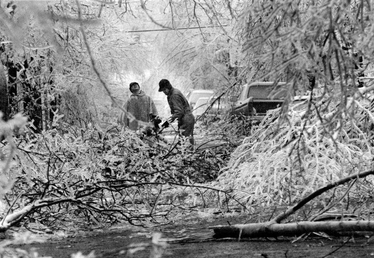 تحطمت أطراف الأشجار المغطاة بالجليد ، وحظرت الطرق وإسقاط خطوط الطاقة الحية ، تاركًا أكثر من 200000 منزل وشركات بدون قوة. استغرق الأمر 14 يومًا لاستعادة الكهرباء إلى معظم عملاء RG&E.