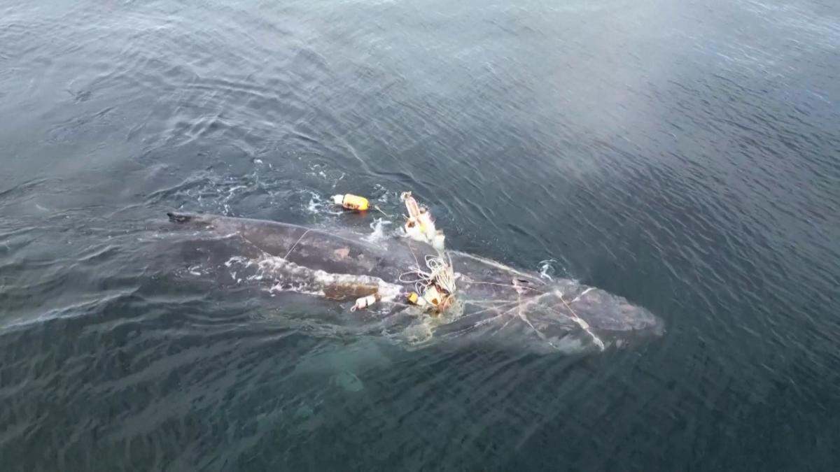 تمكن فريق من هيئة إنقاذ الثدييات البحرية التابعة لوزارة مصايد الأسماك والمحيطات الكندية من تحرير الحوت من التشابك مع أكثر من 50 حبلًا ومعدات صيد وعوامات.