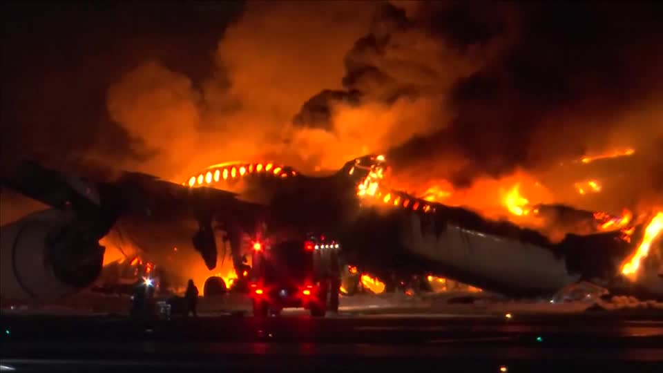 القصة: أظهرت لقطات حية على هيئة الإذاعة العامة NHK طائرة الخطوط الجوية اليابانية إيرباص A350 وهي تشتعل فيها النيران أثناء انزلاقها على المدرج بعد هبوطها. وقد اجتاحتها النيران لاحقا رغم الجهود المحمومة التي بذلتها فرق الإنقاذ للسيطرة على الحريق. وبأعجوبة، تم إجلاء جميع الركاب البالغ عددهم 367 راكباً وأفراد الطاقم البالغ عددهم 12 فرداً.