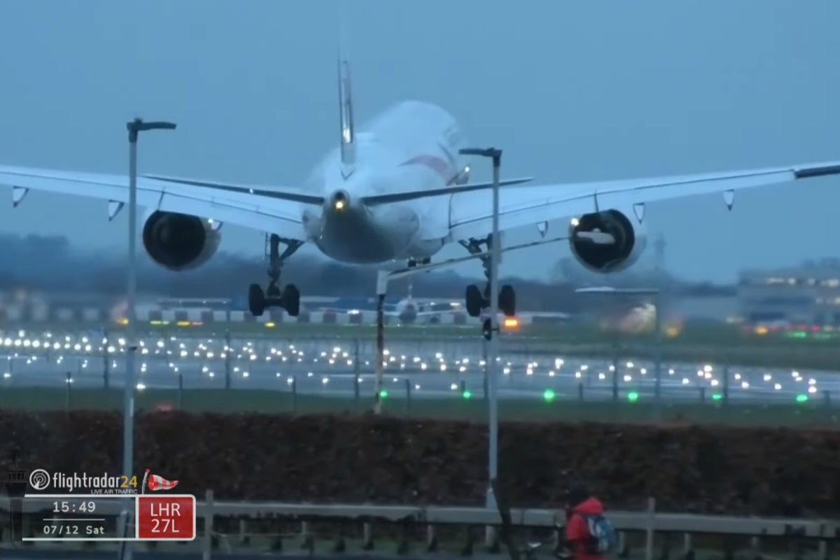 كان YouTuber Big Jet TV يصور طائرات مختلفة وهي تقترب من مطار هيثرو يوم السبت بينما وصلت سرعة الرياح القوية الناجمة عن العاصفة داراغ إلى 96 ميلاً في الساعة في جميع أنحاء البلاد.