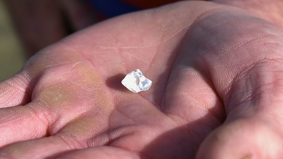 وقال إيفانز في بيان إنه على الرغم من أنه وضع في جيبه الاكتشاف على شكل هرم، إلا أنه لم يكن متأكدًا مما إذا كان ألماسة.