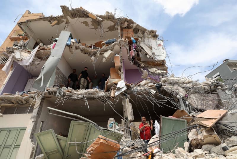 يبحث الفلسطينيون في أنقاض مبنى هدمه القوات الإسرائيلية في الممومة ، بالقرب من مدينة توباس الضفة الغربية. أيمان نوباني/DPA