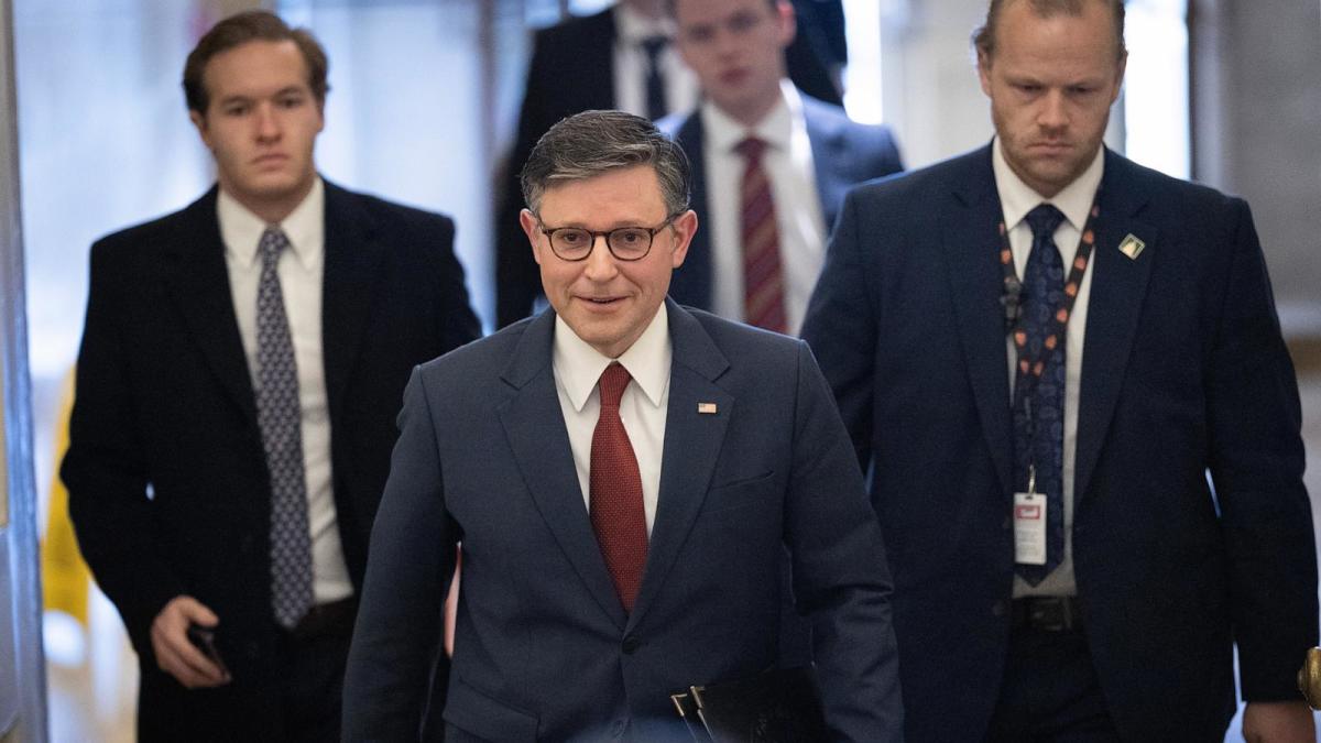 الصورة: رئيس مجلس النواب مايك جونسون يغادر مكتبه في مبنى الكابيتول الأمريكي، 3 يناير 2025، في واشنطن. (تشيب سوموديفيلا / غيتي إيماجز)