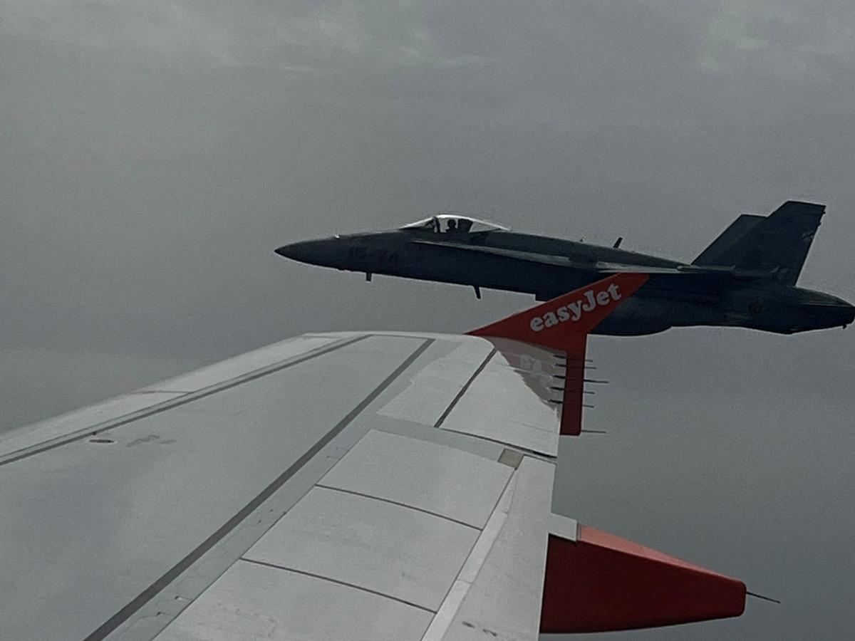 وشاهدت أجهزة الأمن الرسالة وأبلغت السلطات الإسبانية بها، التي أرسلت طائرتين من طراز F-18 لتتبع الطائرة حتى هبوطها، بحسب بي بي سي.