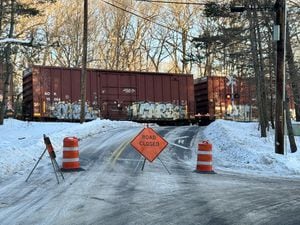 قال مسؤولون إن قطارًا يحمل ورقة طابعة خرجت جزئيًا أثناء مرورها عبر مدينة في ماساتشوستس صباح يوم الثلاثاء.