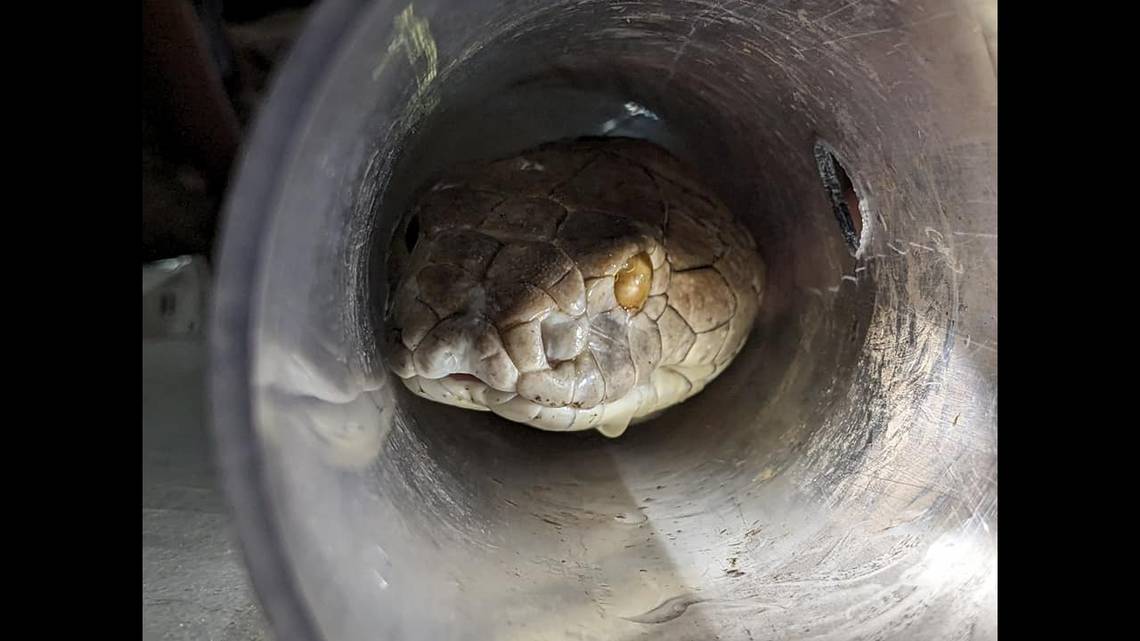 ولهذا السبب لجأ الخبراء إلى محاصرة الثعبان في أنبوب “مع فتحات صغيرة مقطوعة على كلا الجانبين للسماح بالوصول إلى العينين”.
