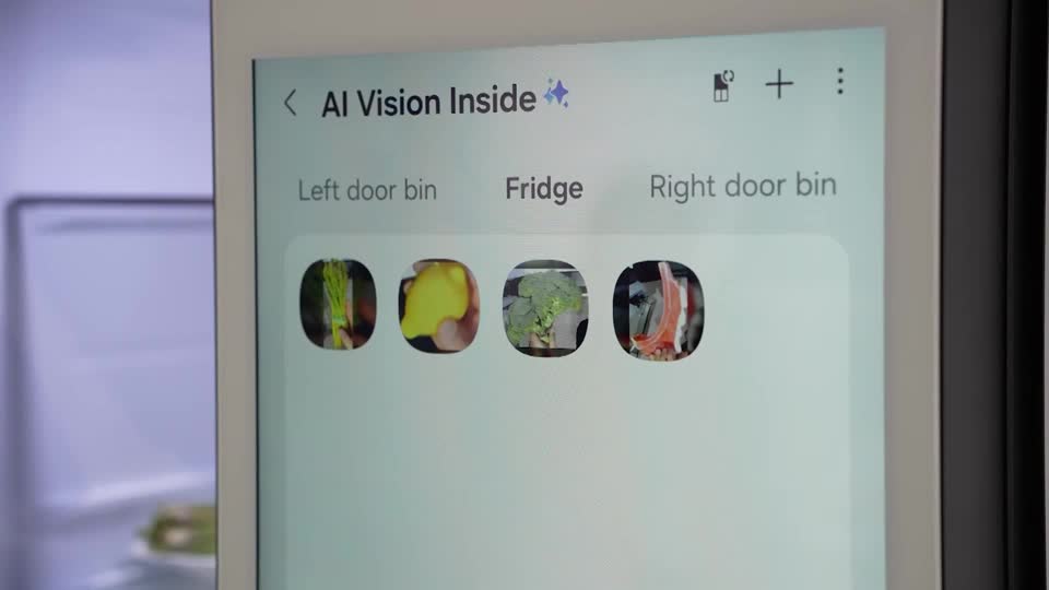 ويتميز الجناح أيضًا بثلاجة سامسونج المحورية العائلية، والتي تستخدم تقنية AI Vision Inside لتحديد المنتجات الغذائية التي يتم وضعها أو إزالتها من الداخل. تعرض الشاشة الموجودة في الخارج الأطعمة ويمكن استخدامها أيضًا لإنشاء قائمة البقالة.