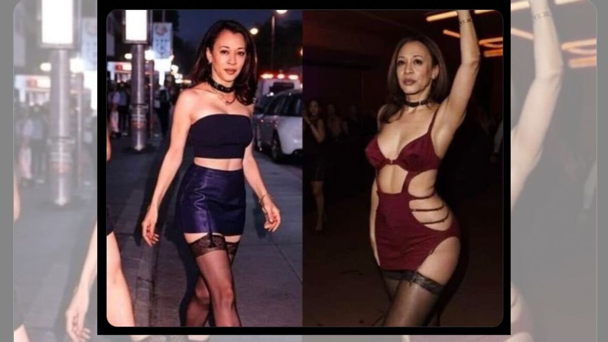 أظهرت صور تم تداولها عبر الإنترنت في شهري أغسطس وسبتمبر 2024 بشكل حقيقي كامالا هاريس وهي شابة ترتدي ملابس مثيرة وتعمل مرافقة.