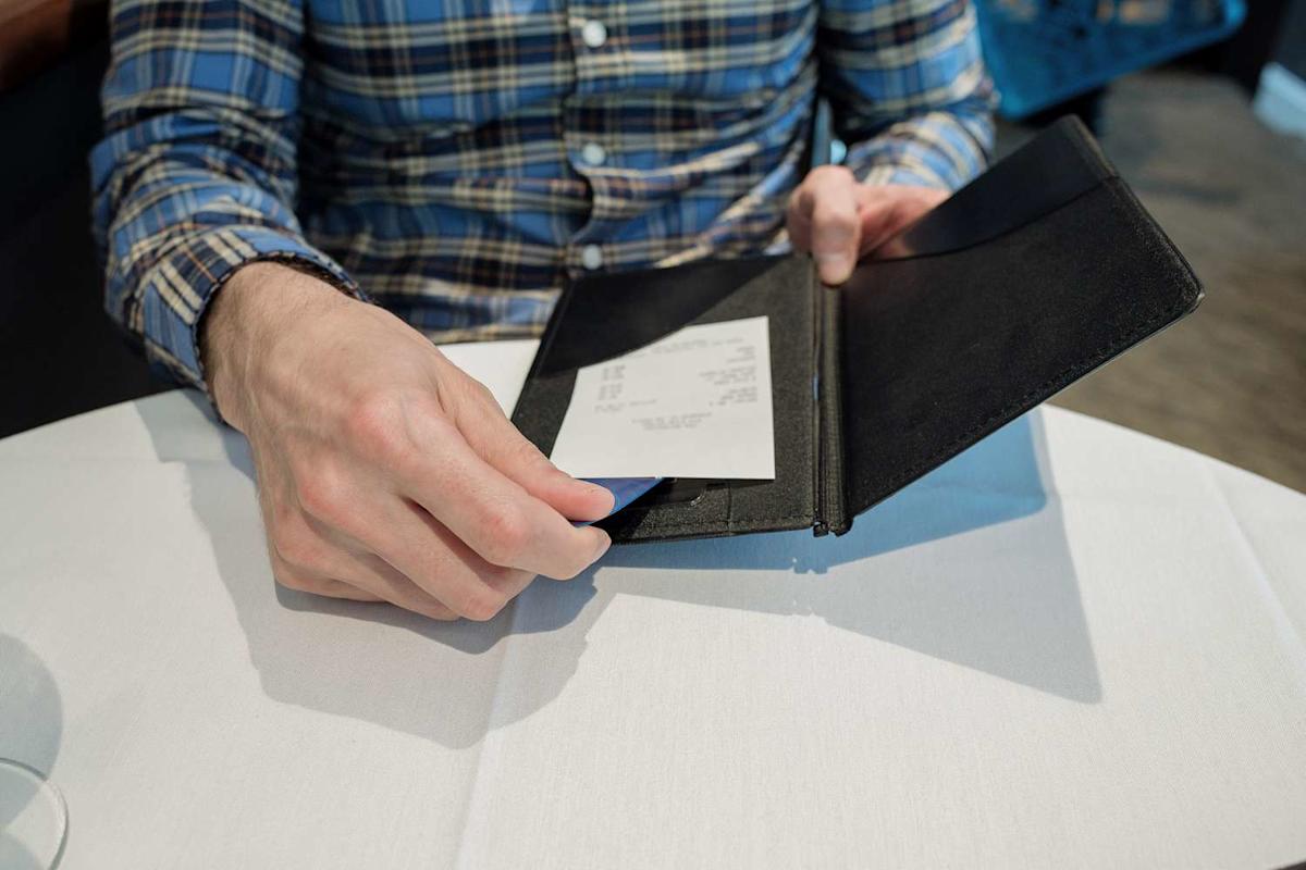 امرأة تبحث في فاتورة المطعم (ألبوم الصور)