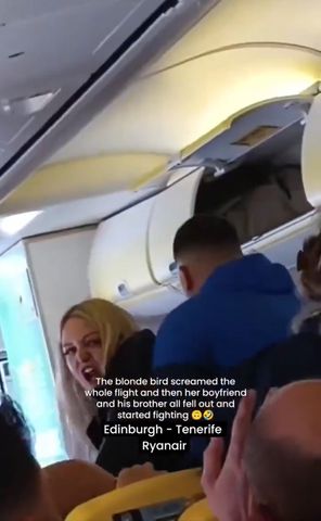 يُظهر مقطع فيديو التقطه أحد الركاب على متن رحلة طيران Ryanair من إدنبرة إلى تينيريفي في 19 فبراير، ثلاثة أشخاص على الأقل وهم يصرخون على بعضهم البعض ويتصرفون جسديًا وسط جدال حاد.