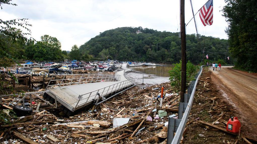 دمر إعصار هيلين عدة بلدات في غرب ولاية كارولينا الشمالية، حيث هطلت أمطار أكثر من ستة أشهر مع استمرار العاصفة.
