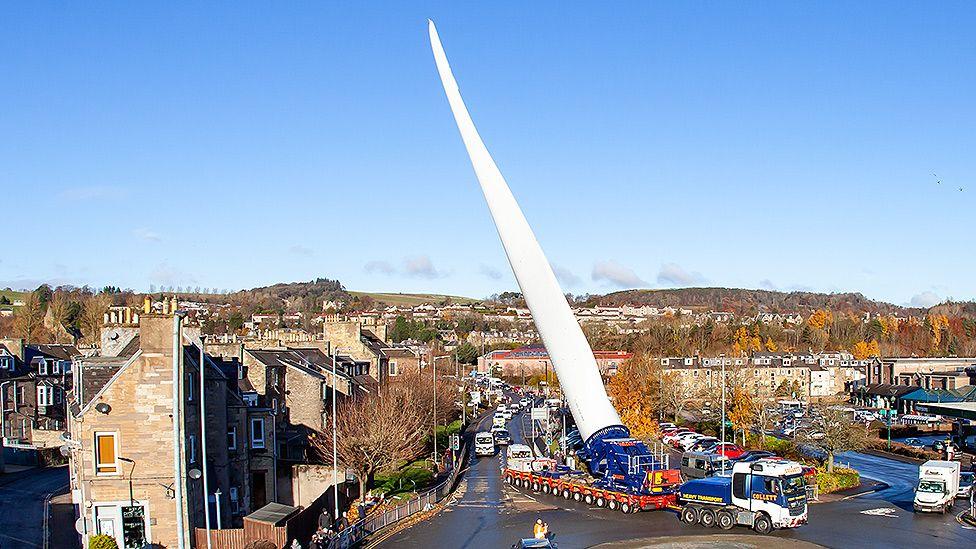 وأصبحت التوربينات التي يبلغ طولها 65 مترًا (210 قدمًا) مشهدًا مألوفًا على الطرق في المنطقة في طريقها إلى موقع باينز بيرن بالقرب من هاويك.