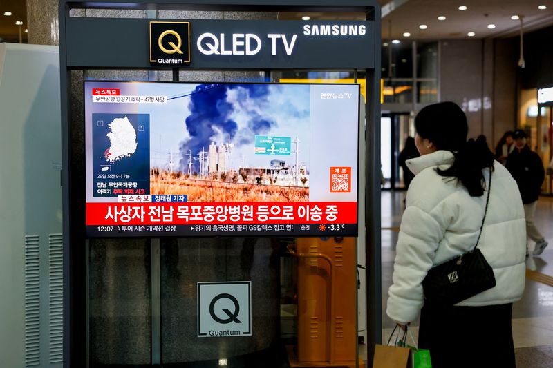 سول (رويترز) – قالت وكالة الإطفاء الوطنية في كوريا الجنوبية إن ما لا يقل عن 62 شخصا لقوا حتفهم عندما انحرفت طائرة عن المدرج وتحولت إلى كرة من اللهب أثناء اصطدامها بجدار في مطار موان الدولي بكوريا الجنوبية يوم الأحد.