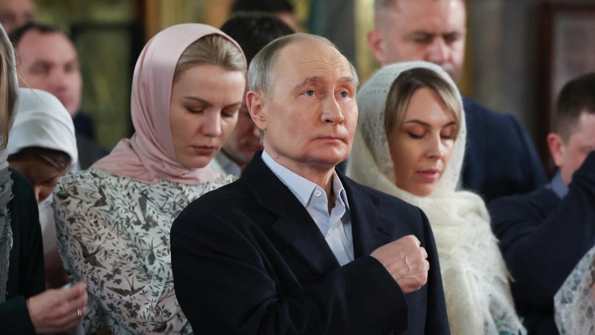 بوتين يحضر قداس عيد الميلاد في كنيسة القديس جورج في موسكو. / جيتي إيماجيس