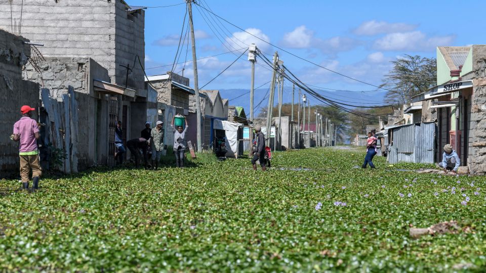 أصبحت بحيرة نيفاشا، الواقعة شمال غرب نيروبي، بكينيا، غير صالحة للملاحة على نحو متزايد. ويغطي صفير الماء، وهو أكثر الأنواع الغازية انتشارًا في العالم، البحيرة ويخنق أسماكها ويترك الناس عالقين.