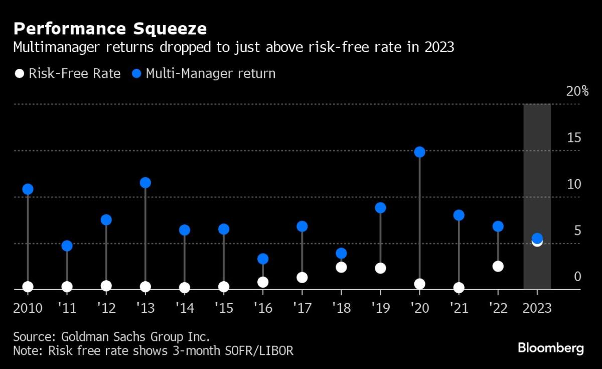 اكتسبت متاجر صناديق التحوط شعبية في السنوات الأخيرة في حين ظلت بقية الصناعة العالمية في حالة ركود. تضاعفت الأصول المجمعة لـ 55 من هذه الشركات على مستوى العالم ثلاث مرات تقريبًا في السنوات الست حتى عام 2023، وفقًا لتقرير سبتمبر الصادر عن فريق الوساطة الرئيسي في Goldman Sachs Group Inc. لقد كان المستثمرون يبحثون عن متاجر شاملة للوصول إلى مجموعة متنوعة من استراتيجيات الاستثمار في بيئة السوق المتقلبة بشكل متزايد.