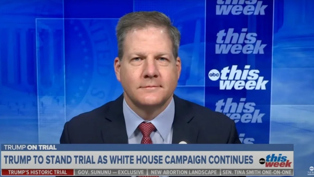 مرساة ABC جورج ستيفانوبولوس مشوي حاكم ولاية نيو هامبشاير. كريس سنونو في “هذا الأسبوع” لمدة 9 دقائق ساخنة ومتوترة بسبب إصرار الأخير على ذلك دونالد ترمب سينسحب من السباق الرئاسي إذا أدين بتهم فيدرالية، في حين أيد سنونو ذلك أيضًا نيكي هالي في الانتخابات التمهيدية. وغنى سنونو نغمة مختلفة صباح الأحد، وقال للمذيع: “أنا و51% من أمريكا” سندعم ترامب كمرشح الحزب الجمهوري، مهما حدث.