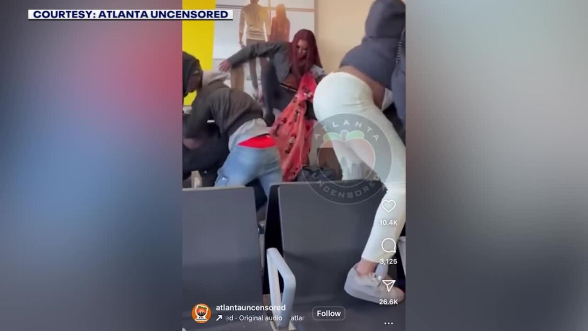 استحوذ فيديو الهاتف المحمول على اللحظات التي اندلعت شجار كبير في مطار أتلانتا.