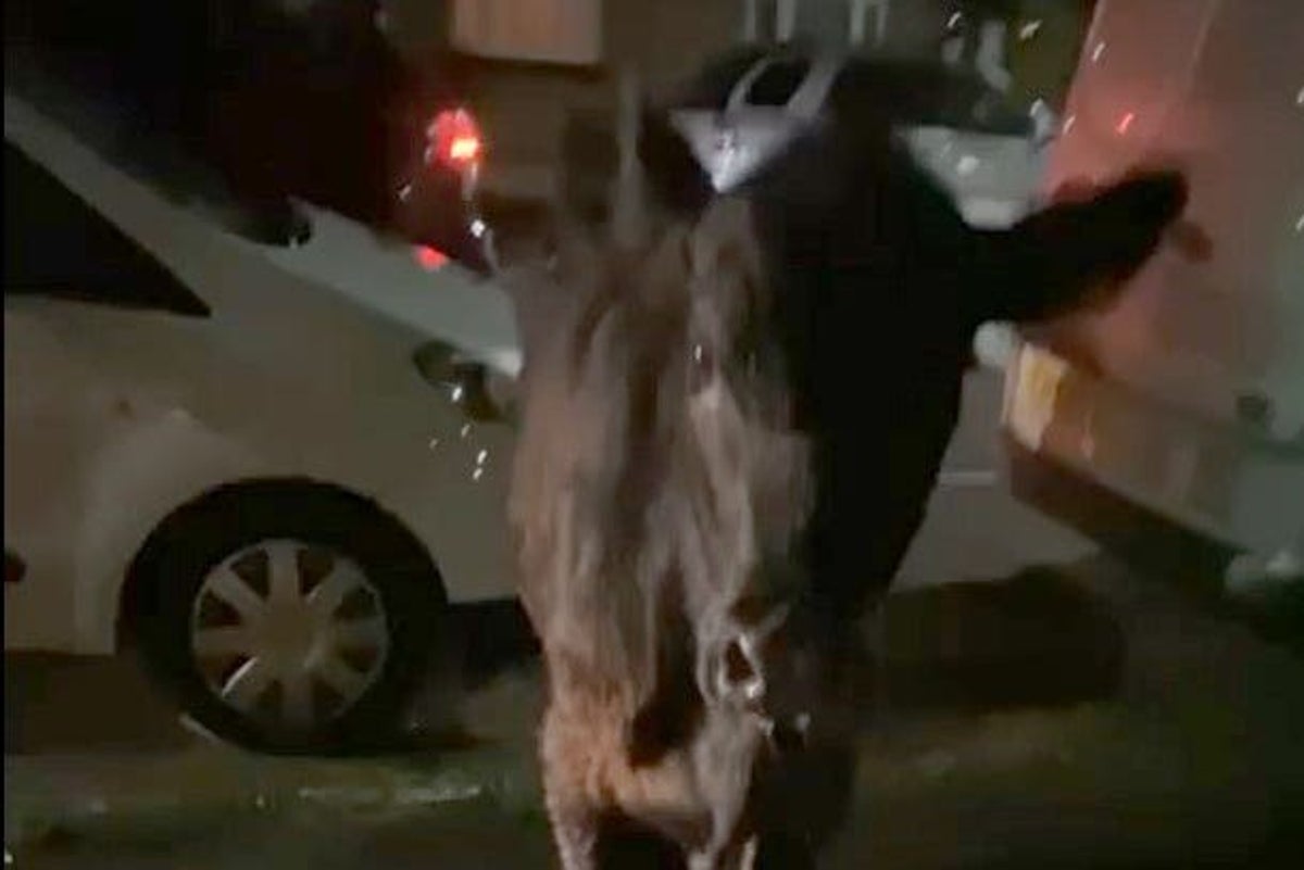 وقالت شرطة ساري إن هناك تقارير سابقة عن البقرة التي ركضت نحو الناس وألحقت أضرارا بالسيارات في جميع أنحاء المدينة في تلك الليلة.