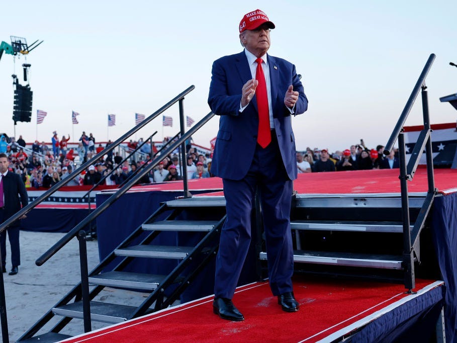 أطلق دونالد ترامب عددًا كبيرًا من اللكمات المبتذلة على خصومه القانونيين والسياسيين وشجع الهتافات الفظة في تجمع حاشد مساء السبت في وايلدوود بولاية نيوجيرسي.