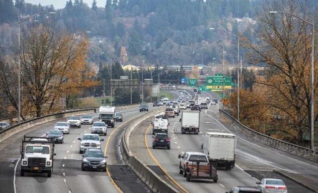 تتحرك حركة المرور بعد الظهر على طول I-205 بالقرب من جسر Abernathy بين مدينة أوريغون و West Linn (مجموعة Media Pamplin).
