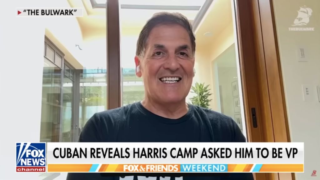 يقول مارك كوبان إنه رفض عرضًا ليكون مرشحًا لنائب رئيس كمالا هاريس ، وأخبر بودكاست بولوارك أنه لم يعتبره حتى لأن شخصيته ليست مناسبة لوظيفة التداخل الثاني.