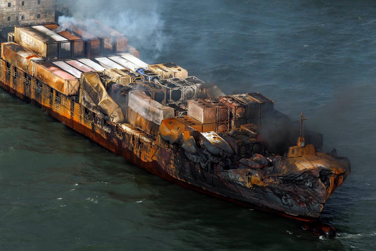 وقال المسؤولون إن Solong كان ينجرف ولا يزال يحترقه يوم الأربعاء ، لكن من المحتمل أن يظل واقفًا على قدميه بدلاً من الغرق.
