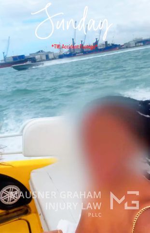 في مقطع فيديو تمت مشاركته على موقع Instagram بواسطة شركة Mausner Graham Injury Law PLLC (الشركة التي تمثل العديد من الأشخاص المصابين في الحادث)، تبدأ الراكبة في تسجيل نفسها أثناء جلوسها على متن قارب سياحي في ميامي يسمى Thriller. تقوم بتحريك الكاميرا لتكشف عن أفق ميامي بينما يسرع القارب عبر الماء. تم تعتيم وجوه جميع الركاب، بما في ذلك وجهها، لحماية خصوصيتهم.