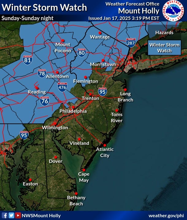 ستكون مراقبة العاصفة الشتوية سارية المفعول يوم الأحد في معظم أنحاء شرق ولاية بنسلفانيا، بما في ذلك بوكونوس.