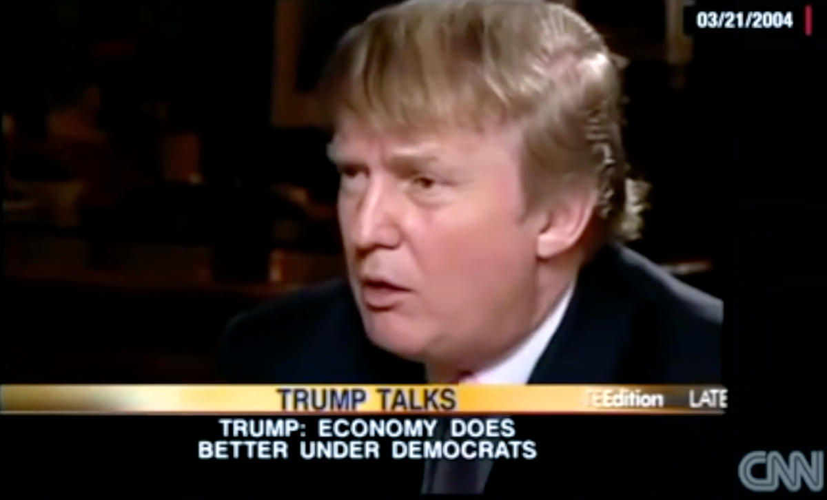 في مقابلة عام 2004 على قناة سي إن إن، دونالد ترمب قال: “كان أداء الاقتصاد أفضل في ظل الديمقراطيين منه في ظل الجمهوريين”.