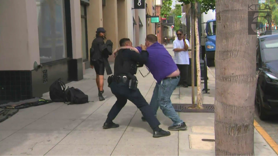 لعبت لحظة مخيفة أمام طاقم أخبار KTLA على طول ممر تسوق شهير في باسادينا صباح الجمعة.