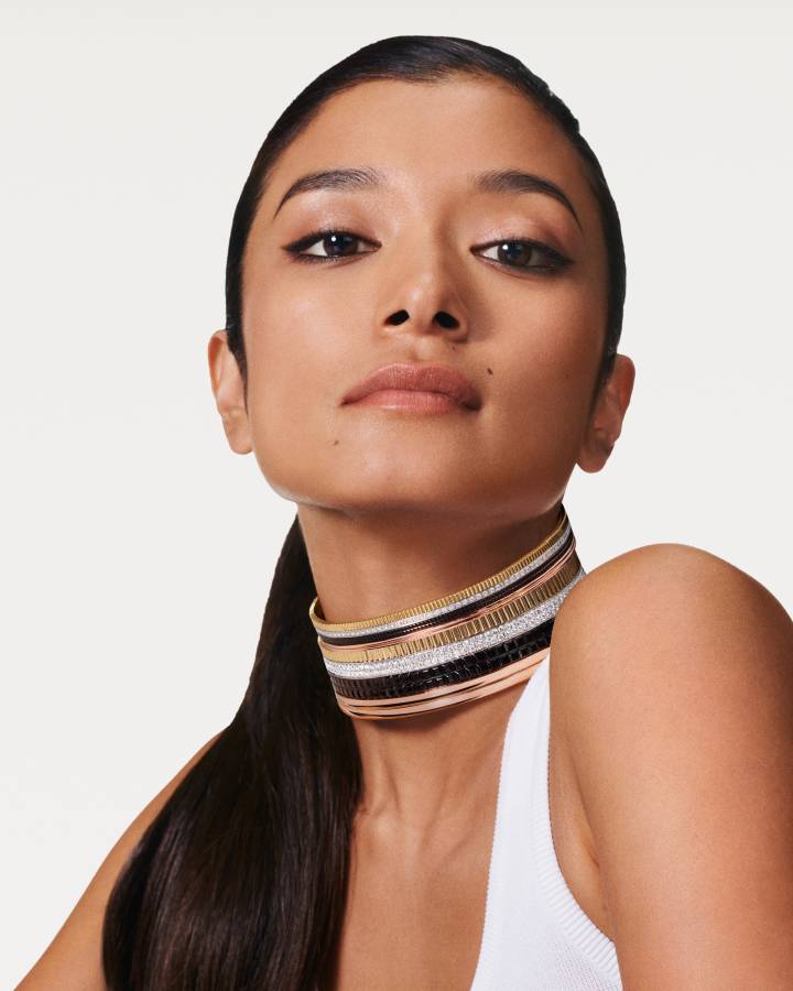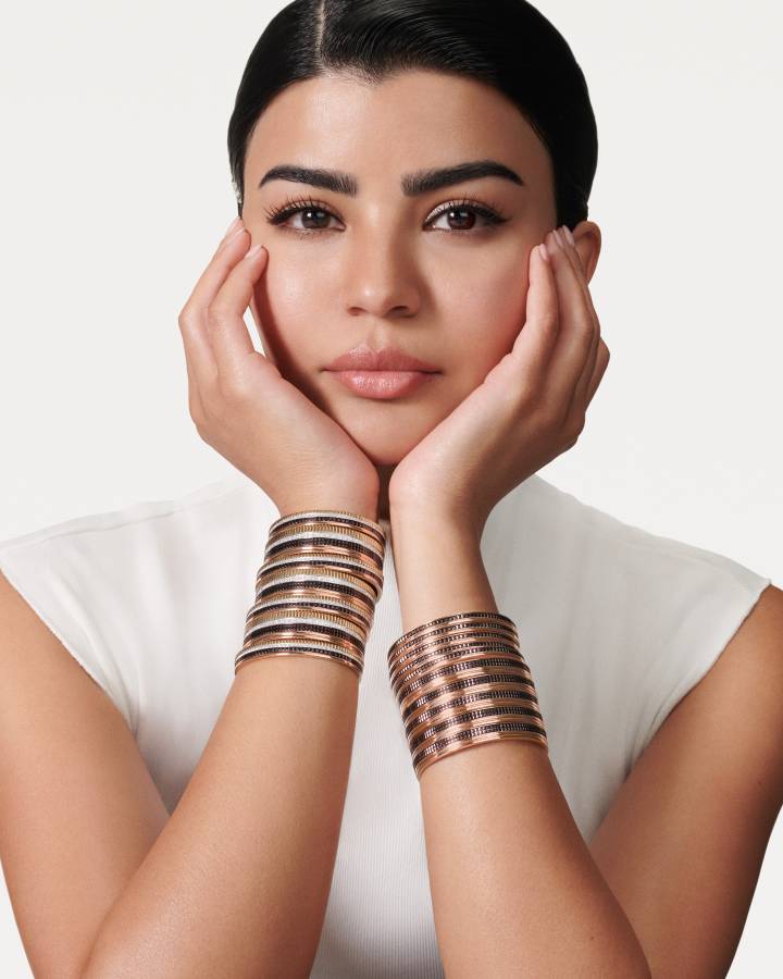 وفي السياق ذاته، صممت بوشرون سوار Quatre اللافت للأنظار على هيئة بكرة، يشتمل على ما لا يقلّ عن 12 قطعة، بما في ذلك سوارين كبيرين وعشرة أساور، تعكس كلّها جوهر ورموز المجموعة. وجدير بالذكر هنا بأن التركيب يخلو من استخدام المواد اللاصقة، حيث تمّ الاعتماد على تقنيات الحرفية اليدوية لتجميع مكوّنات لا تُعدّ ولا تُحصى، ليتاح بذلك لمن يضع هذه المبتكرات الفنية مرونة وحرية لا مثيل لهما في انتقاء وتنسيق القطع بأسلوبه الخاص.