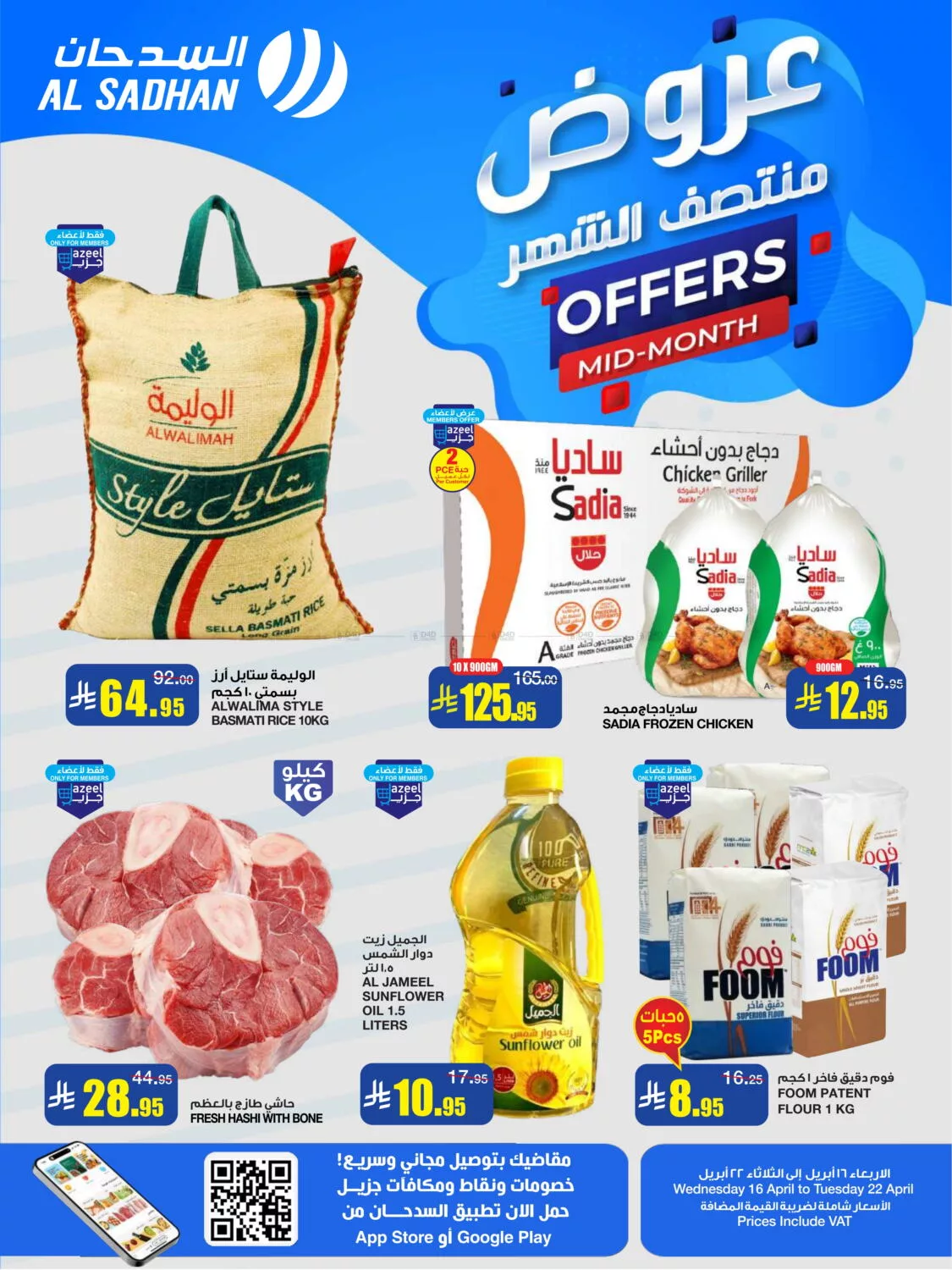 عروض السدحان الأسبوعية الأربعاء 16 أبريل 2025 تشمل تخفيضات واسعة على الأرز البسمتي والزيوت النباتية والدقيق الأبيض والسكر والحليب المجفف بالإضافة إلى المعلبات مثل الفول والتونة والذرة والصلصات الجاهزة والمربى والعصائر بنكهات متعددة والمياه المعدنية والأجبان بأنواعها واللبن الزبادي