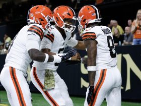 حضرت الفنانة كيلسي باليريني مع صديقها الممثل تشيس ستوكس وقد اختارت فستاناً ناعماً باللون الأحمر، جاء من الدانتيل الشفّاف بتصميم يشبه “روب” النوم وحمل توقيع المصمّم David Koma، بينما ارتدى صديقها بليزر بيضاء ونسّق معها قميصاً أبيض وبنطلوناً أسود.