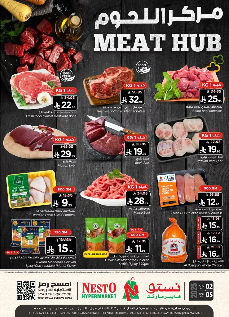 عروض نستو الرياض الاربعاء 2 يوليو 2025 تقدم تشكيلات متنوعة من اللحوم الطازجة والمجمدة التي تلبي جميع احتياجات الأسرة السعودية حيث تشمل اللحوم المحلية مثل لحم الجمل بالعظم وبدون عظم ولحم الغنم الطازج بالإضافة إلى كبدة البقر المميزة التي تناسب أطباقك اليومية