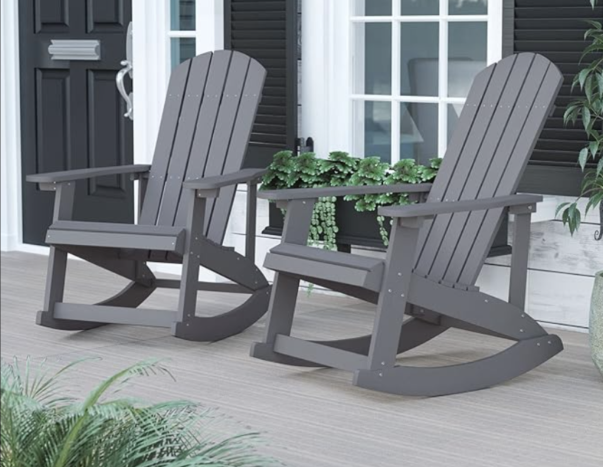 تعتبر الكراسي الهزازة المصممة على طراز آديرونداك ساحرة دائمًا وستبدو رائعة على الشرفة الأمامية أو سطح السفينة. مصنوعة من خشب البوليريسين، وهي مصممة لتدوم طويلاً، ولا تحتاج إلى طلاء أو صيانة. اختر من بين خمسة ألوان، بما في ذلك الرمادي والأحمر والأصفر.