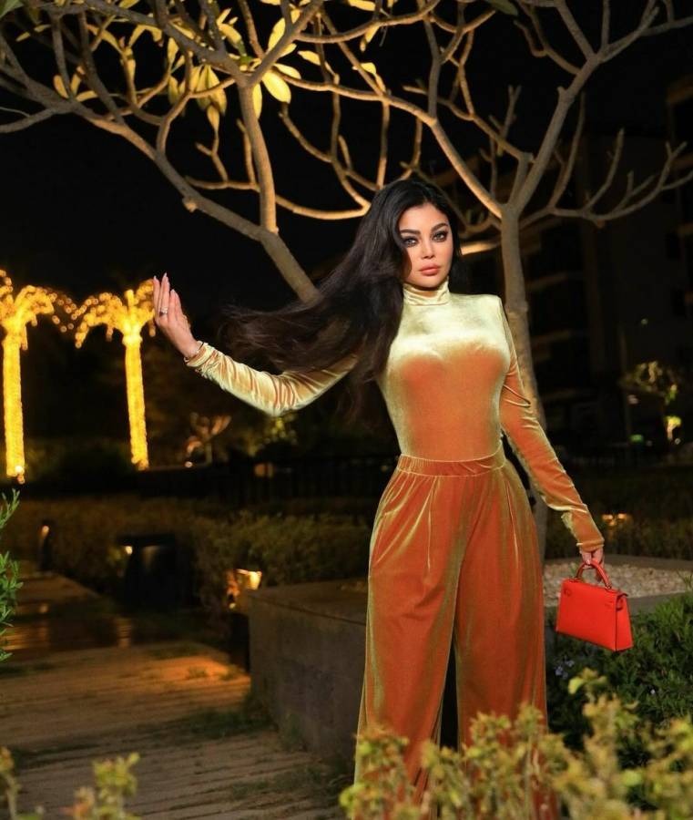 كما حملت الفنانة اللبنانية حقيبة يد صغيرة الحجم باللون البرتقالي من دار أزياء Hermès، يبلغ سعرها نحو 41 ألف دولار، ونسّقتها مع جمبسوت من المخمل باللون الأصفر.