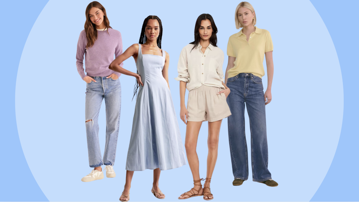 هذا الربيع ، تكون جميلة باللون الوردي والضرب والأزرق الأزرق. (Amazon ، Everlane ، Abercrombie & Fitch)
