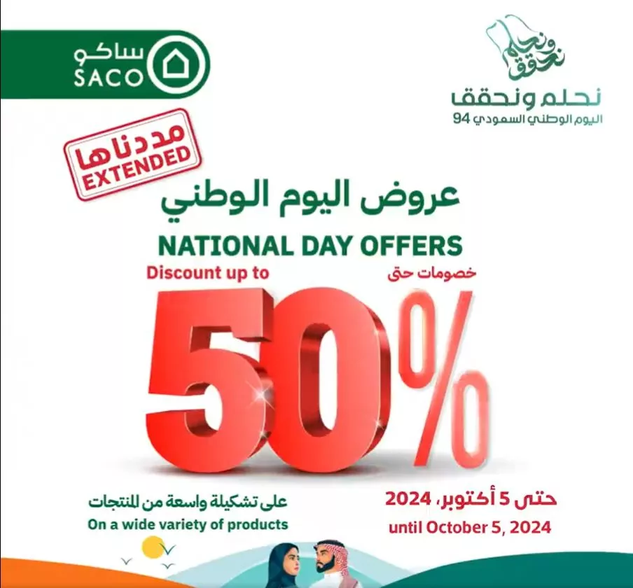 ونقوم فىموقعنا عروض اليوم بتغطية كافة رعوض اليوم الوطنى والذى تقدم فيه ساكو السعودية العديد من التخفياتض المميزة فى هذه المناسبة السنوية التى ينتظرها كل المتسوقين وكل محبى العروض والتخفيضات فى الممكلة
