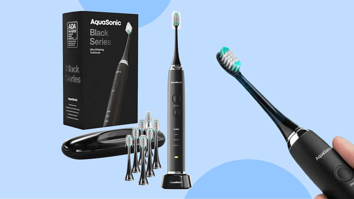 هذه فرشاة الأسنان الذكية Aquasonic تصطاد وتزيل البلاك. يوفر محركها 82000 اهتزازات في الدقيقة ويزيل ما يصل إلى 10 مرات تراكم أكثر من فرشاة الأسنان العادية.