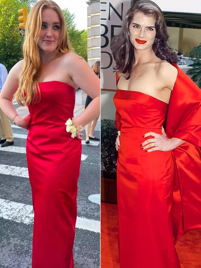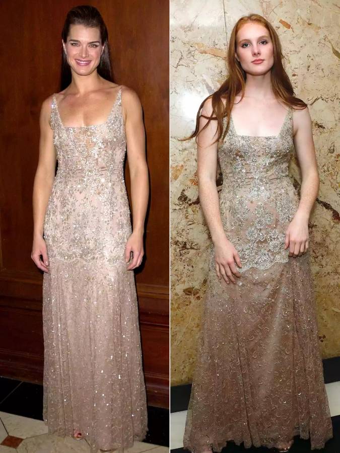 ومن جهتها، استعارت غرير هينشي فستان والدتها بروك شيلدز، الكلاسيكي اللامع من Badgley Mischka، بعد 22 عاماً من ارتدائه للمرّة الأولى. كما ارتدت الابنة الأخرى روان هينشي في عام 2021 فستاناً قرمزي اللون من دون حمّالات، كانت والدتها قد ظهرت فيه خلال حفل توزيع جوائز “غولدن غلوب” عام 1998.