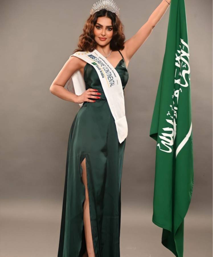 واستعرضت عارضة الأزياء السعودية كذلك إطلالتها خلال مشاركتها بمسابقة ملكة جمال أوروبا 2023، واختارت فستاناً باللون الأخضر من الساتان الفخم بتصميم بسيط خالٍ من التطريزات، مع فُتحة ساق جانبية ناعمة، وتزيّنت بتاج مميّز.