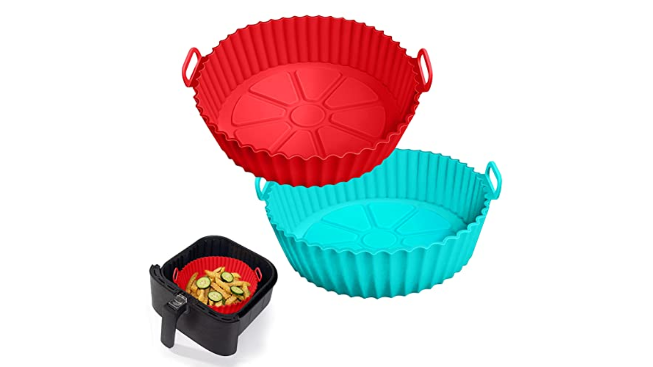 هذه المجموعة مصنوعة من السيليكون الآمن غذائيًا، وتأتي في عبوة من قطعتين تناسب مقلاة هوائية بسعة 3 إلى 5 لتر. المكافأة: إنها أيضًا آمنة للاستخدام في الميكروويف.