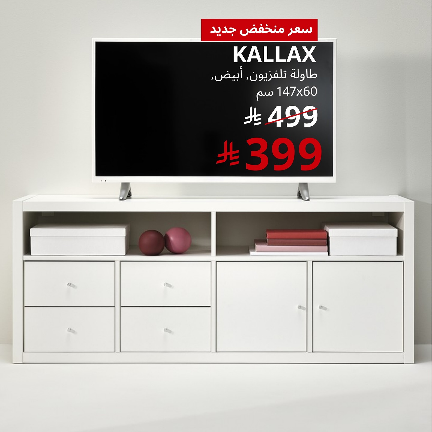 تصميم أنيق وخفيف يناسب غرف النوم أو المدخل، مع درجين لتخزين الإكسسوارات أو الأدوات الصغيرة، وقاعدة تسمح بوضع مقعد مريح أسفلها - طاولة تلفزيون KALLAX – أبيض